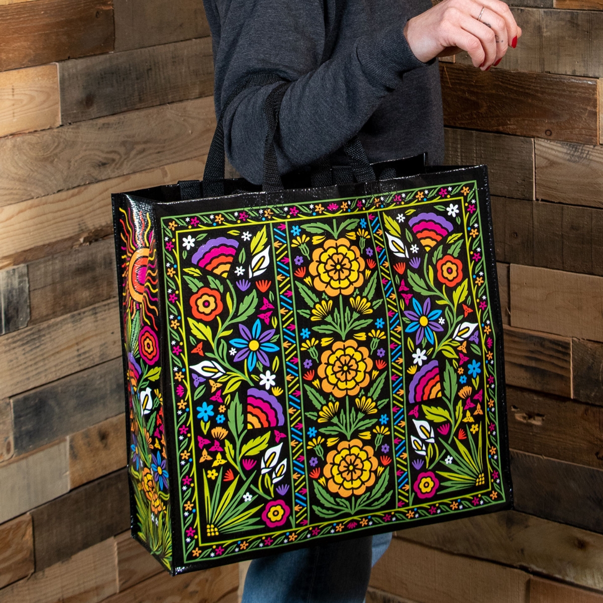 עשוי מחומרים ממוחזרים, עמיד כמו פרח בר. עם ידיות כפולות – ארוכות לכתף, למסעות בין שדות הפרחים והשווקים הצבעוניים. וקצרות לאחיזה ביד, כשרק “קופצים לקנות זר קטן” (שתמיד הופך לגינה שלמה).