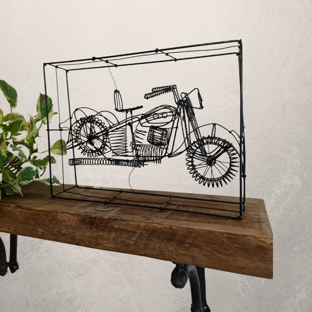 הפסלון עשוי מחוטי ברזל שזורים וקשורים זה בזה, היוצרים אופנוע תלת-מימדי. בעבודת אמנות זו יש ירידה לפרטי פרטים ושימת דגש על כל חלקי האופנוע השונים.