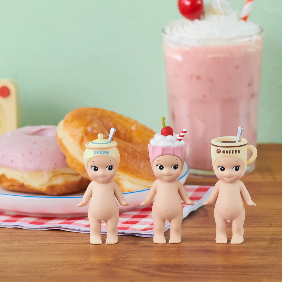 ישר מהדיינר האמריקאי הנוסטלגי, 12 מלאכים מחופשים למאכלים ומשקאות אהובים: המבורגר, כריך, צ’יפס, קטשופ, חרדל, מילקשייק, כוס קפה, סוכר, דונאט, נקניקיה בלחמניה, עוף מטוגן וכריך עוף.